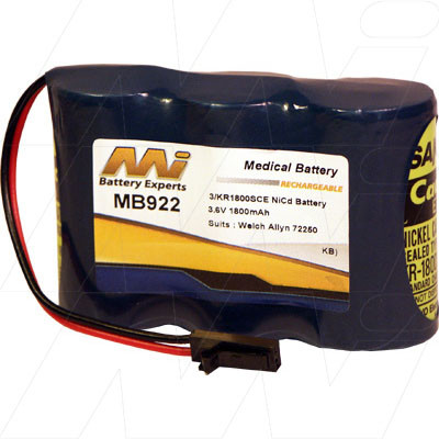 Comments Battery suitable for Welch Allyn Lumiview 20502. Replaces Welch Allyn 72250. 3/KR1800SCE. Manufactured using Sanyo cells.