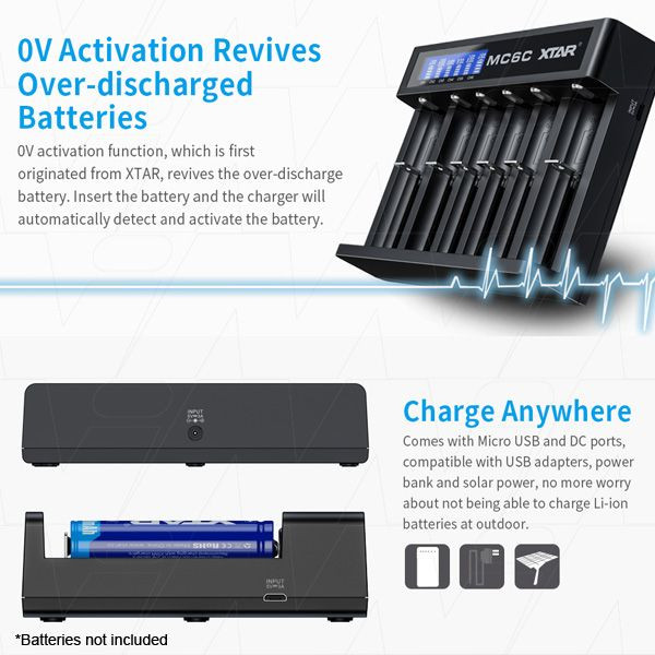 | Description | All-compatible 6-slot LCD smart Li-Ion battery charger |